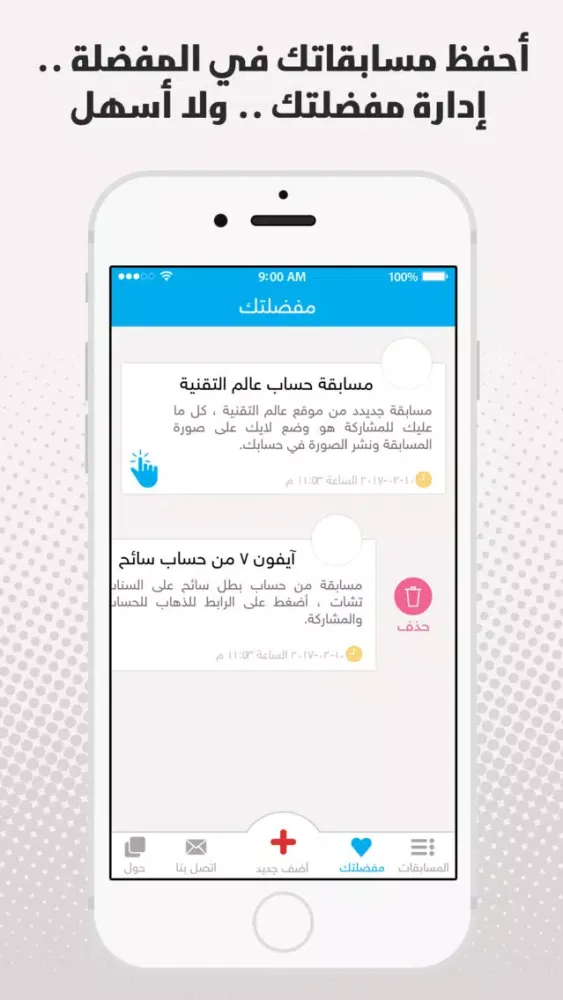 حمل التطبيق الآن وأستمتع بتجربه حظك في مختلف المسابقات ..
