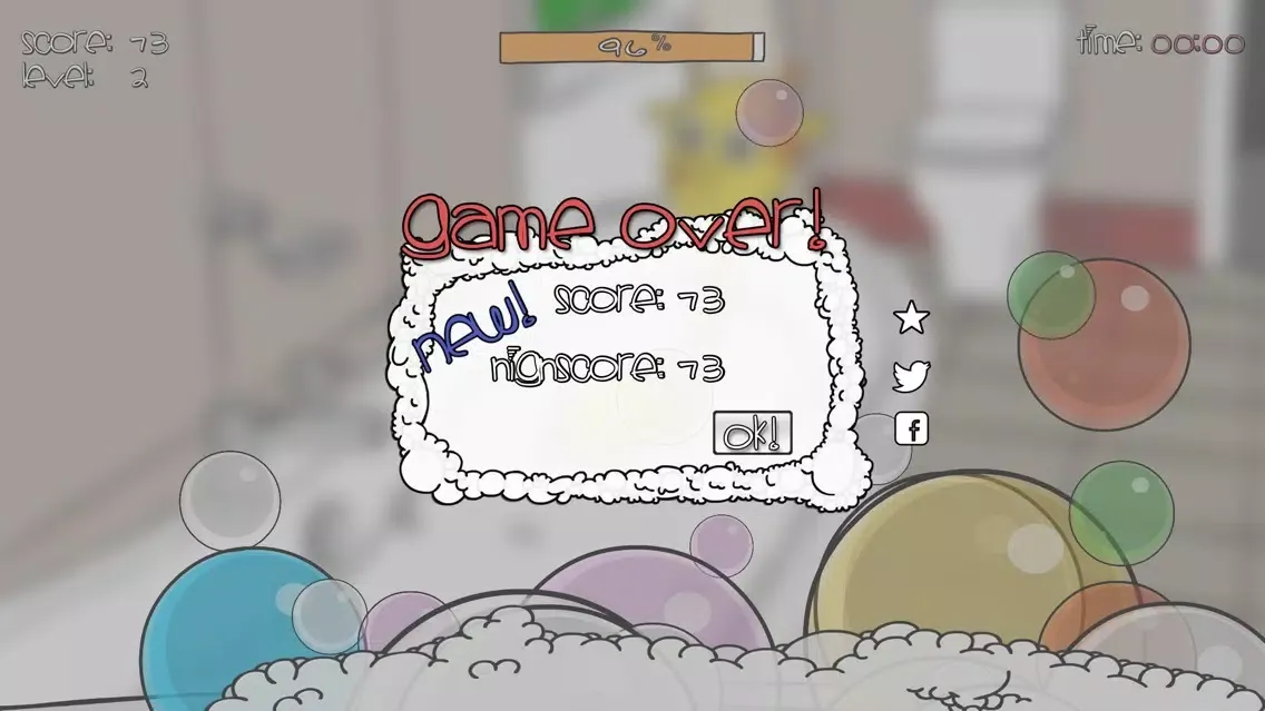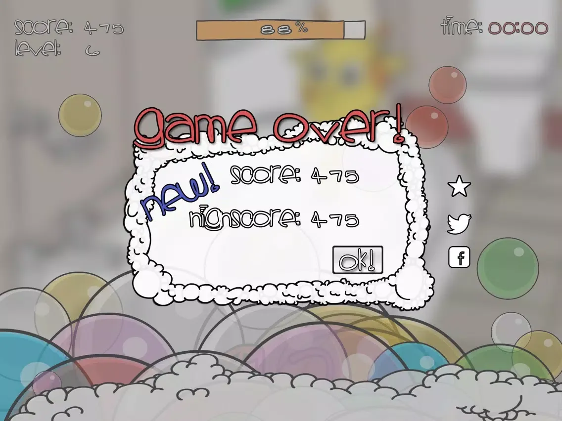 Elvis the giraffe doesn't like to take baths, because he gets soap in his eyes, help him keep the soap bubbles to a minimum. Pop the bubbles to gain points, the higher the score the harder it gets. Get better score than your friends on gamecenter!
