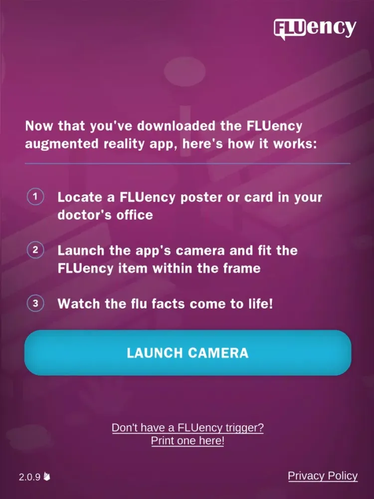 Flu AR is an augmented reality app used to enhance flu education via print materials from Sanofi Pasteur.