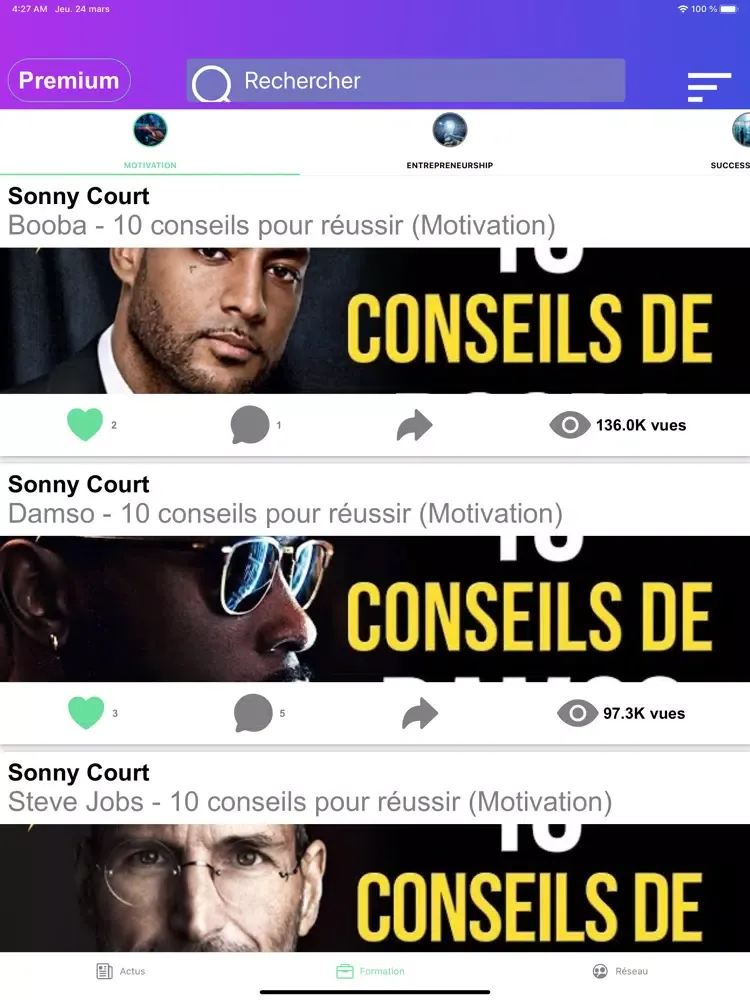 En rejoignant une communauté d’individus ambitieux, créatifs et audacieux qui, riches de leur succès, contribuent à celui des autres (Partie "Réseau" - Abonnement premium)