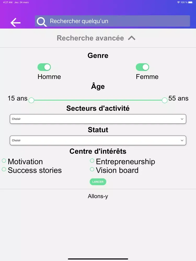 Qui aspirent à rencontrer de nouvelles personnes au travers d'un tout nouveau réseau social au sein duquel les membres partagent les mêmes valeurs et se donnent tous les moyens de réussir !