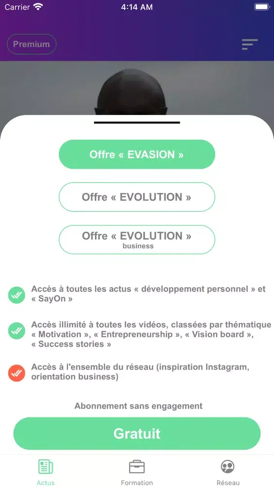 > Utiliser uniquement la partie gratuite de l'application (Actus+Formation),
