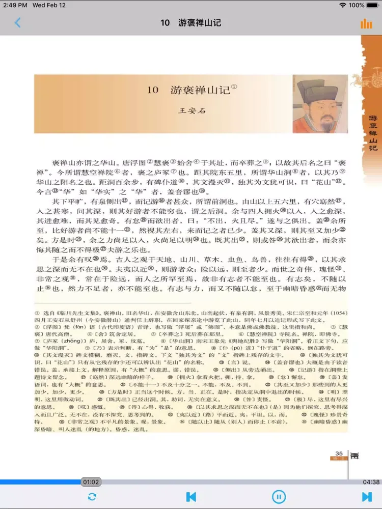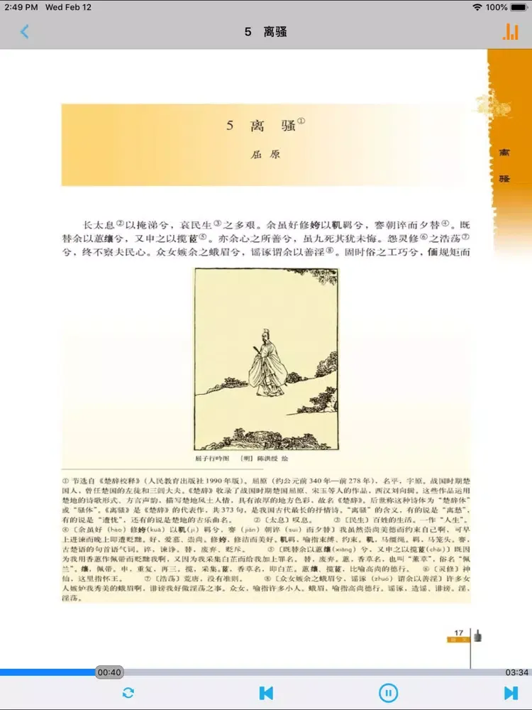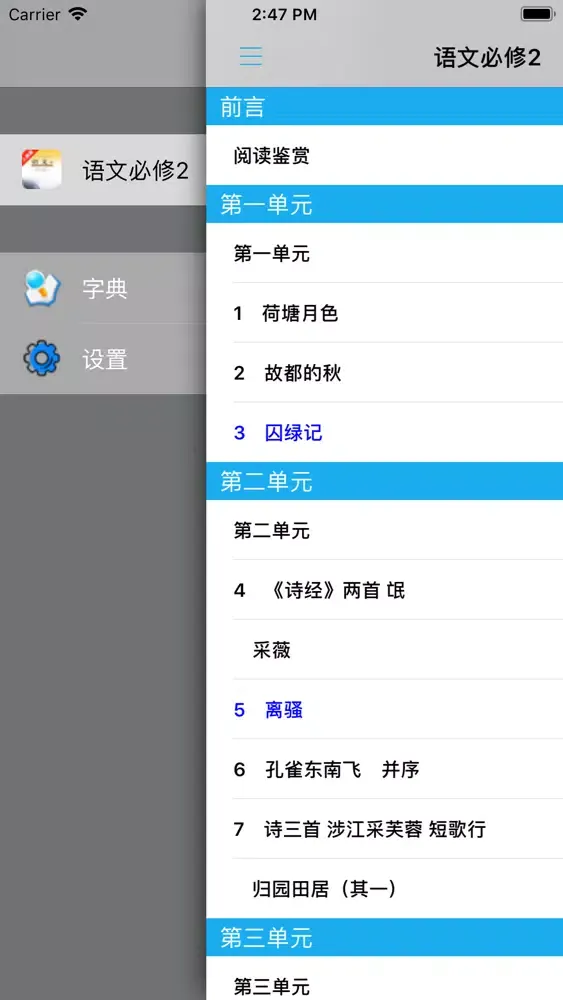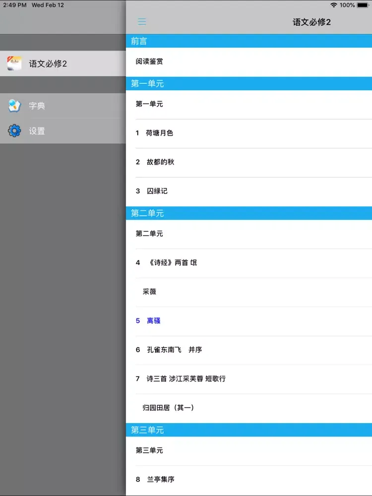 *根据教材配套,此应用为人教版高中语文必修2完全最新版。
