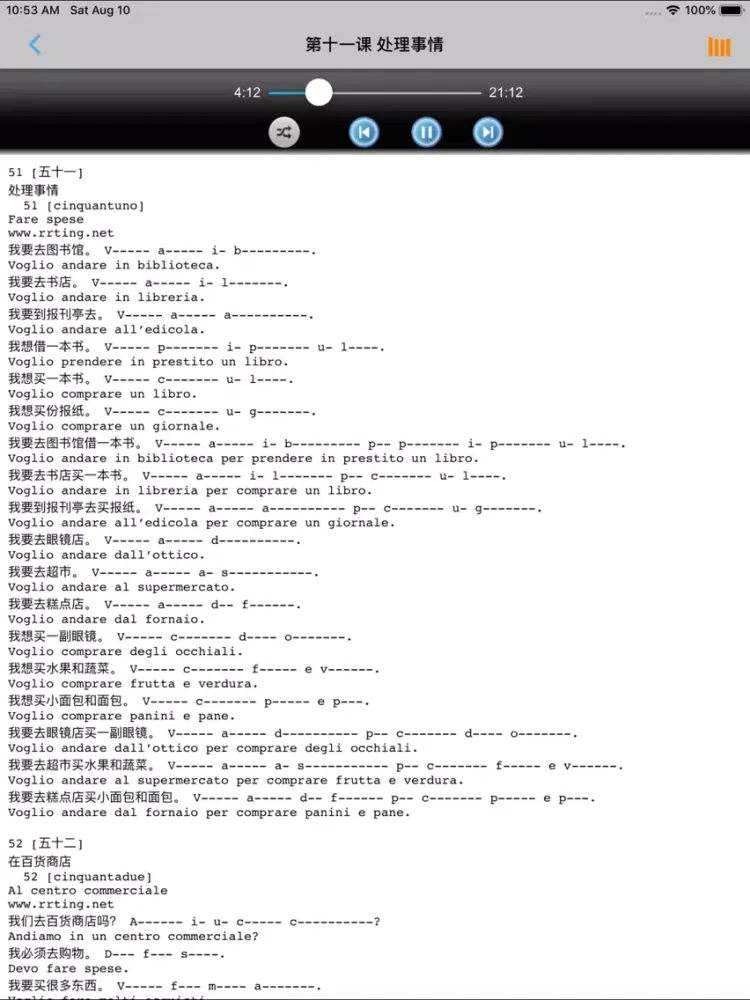 Capturas de pantalla de 学意大利语中意双语版 -意语初级教程 iPad