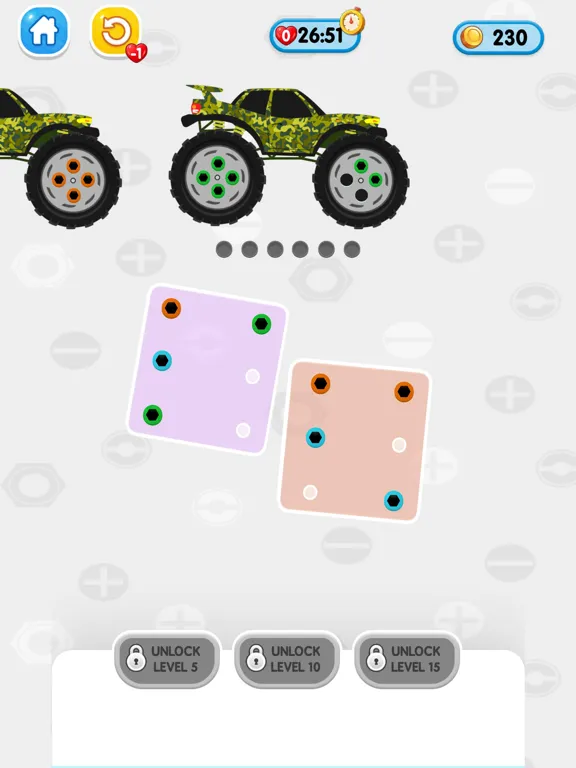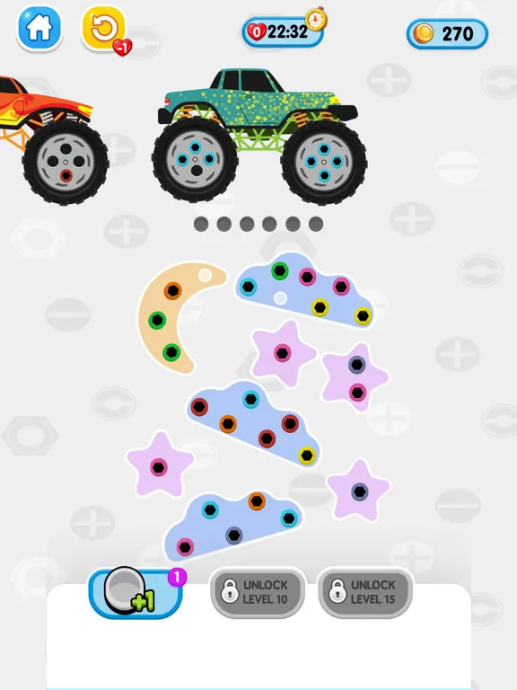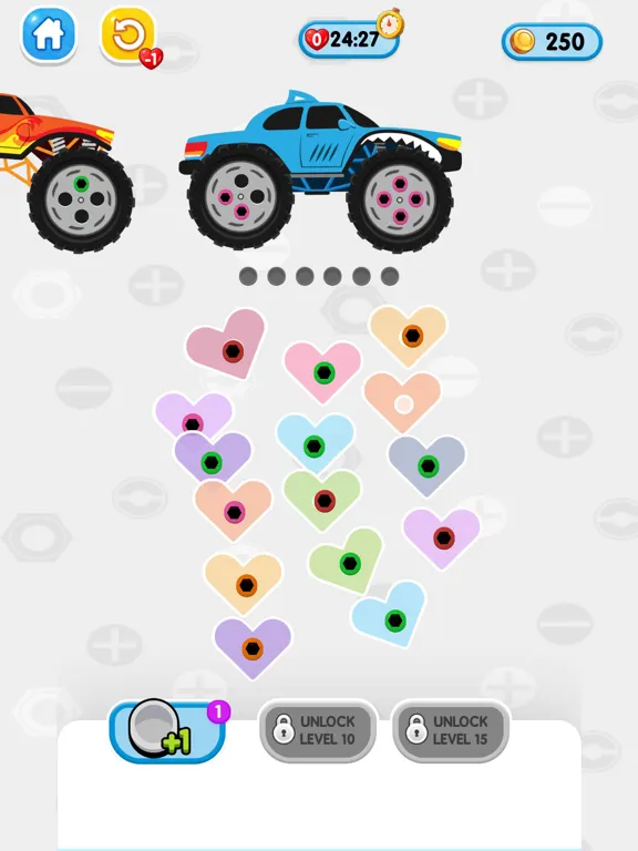 Screw Jam with color matching game is a creative and strategic puzzle game to boost the brain of players as every move needs full consideration. Match the nuts and hub pin colors to fix them and move to the next level. Show your brain power by correctly moving and fixing the nuts to complete the task. Players should match the color to fix all the nuts on the tire hub easily. Complete the levels by matching the colors of screws and nuts in the Jam Screw Bus: Color Matching Game. Download Now!