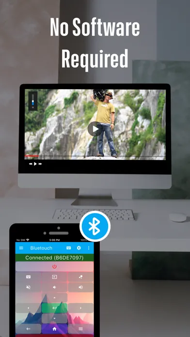The app works as a user-friendly all-in-one keyboard, mouse, and remote that can be used with your existing computer, iPad, smart TV, or other Bluetooth-enabled device. Use the app as a media player to watch movies on your iPad, or as a touchpad and keyboard to control your PC.