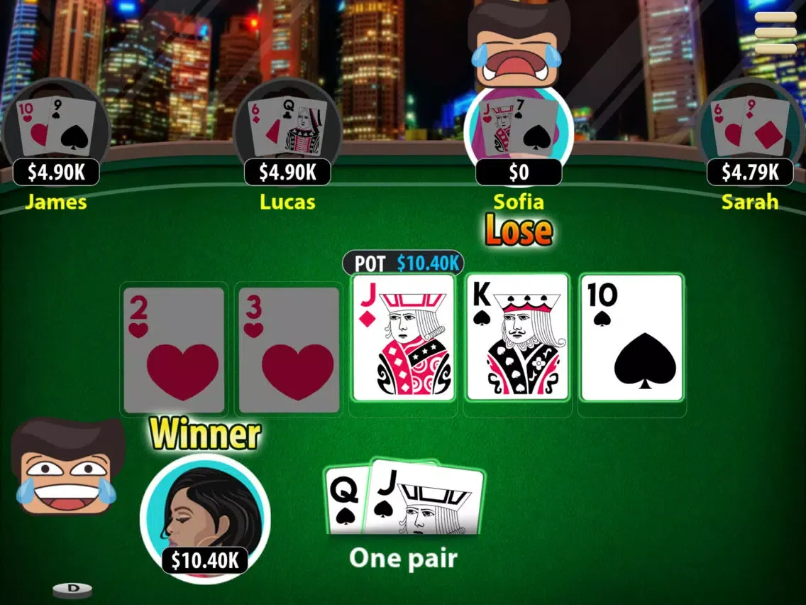 Poker texas holdem is a most gambling in the world, with five world poker tour you can become the god of poker and won big trophy.