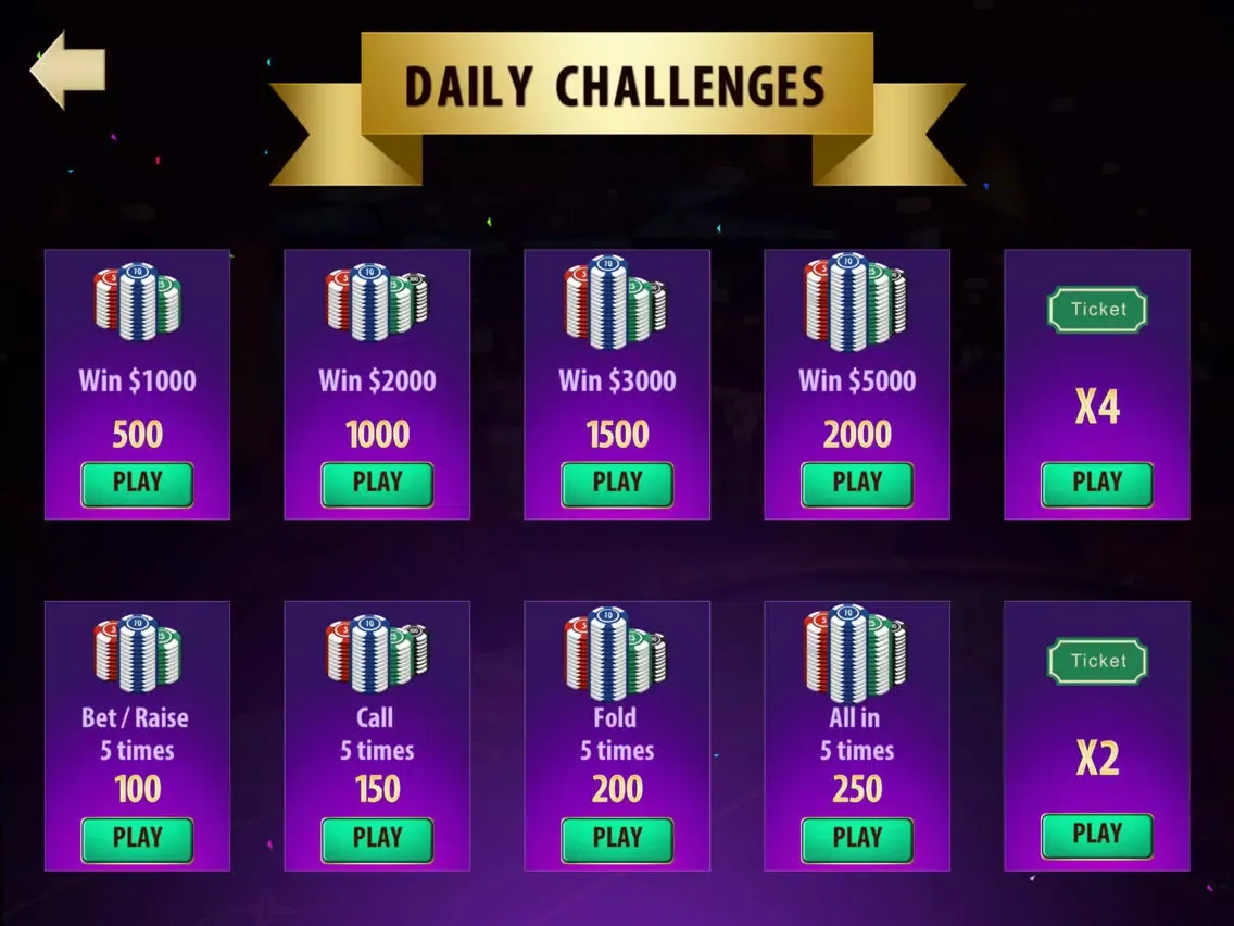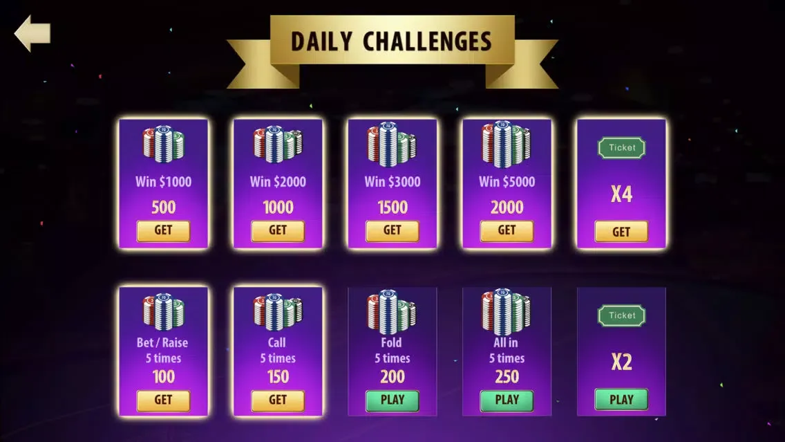 - Challenger ever day can help you training poker skill and get a lot chip.