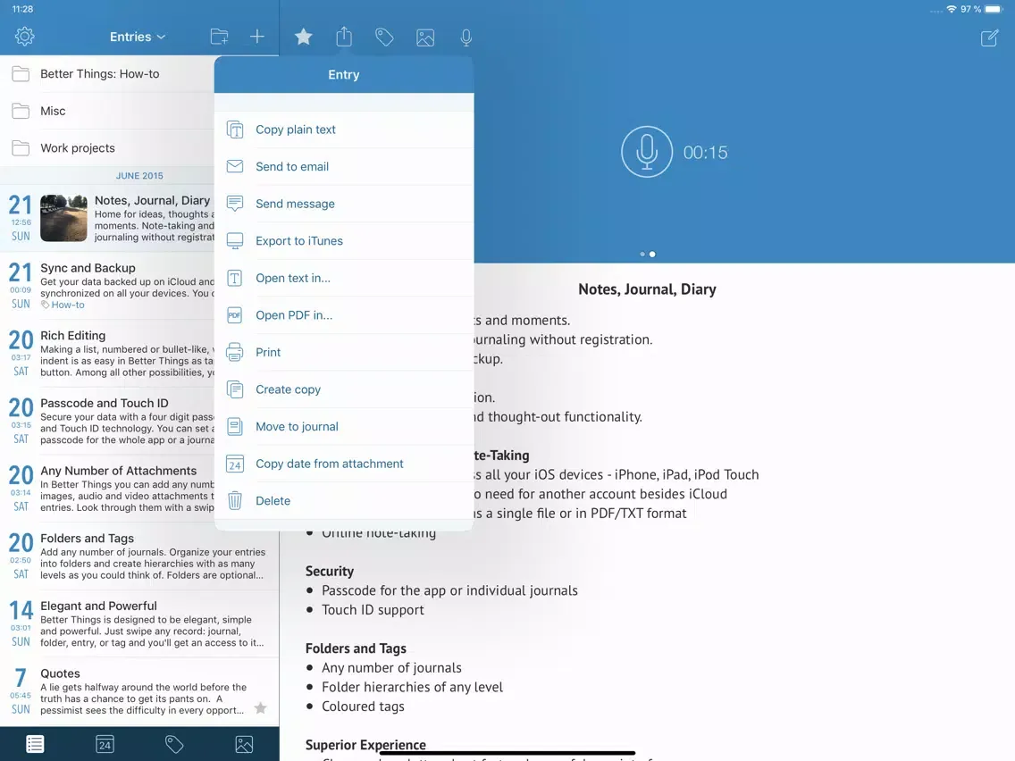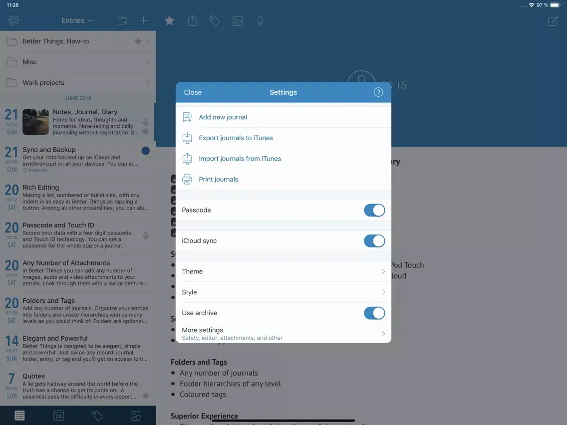 We have also packed Better Things with a wealth of handy features above and beyond the usual notes editor functions. We work constantly to perfect our products and to develop and add new features to them. If there is a specific feature that you’d particularly like to see, write and let us know!