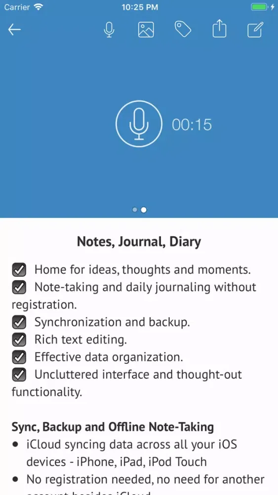 • iCloud sync across all your iOS devices - iPhone, iPad, iPod Touch
