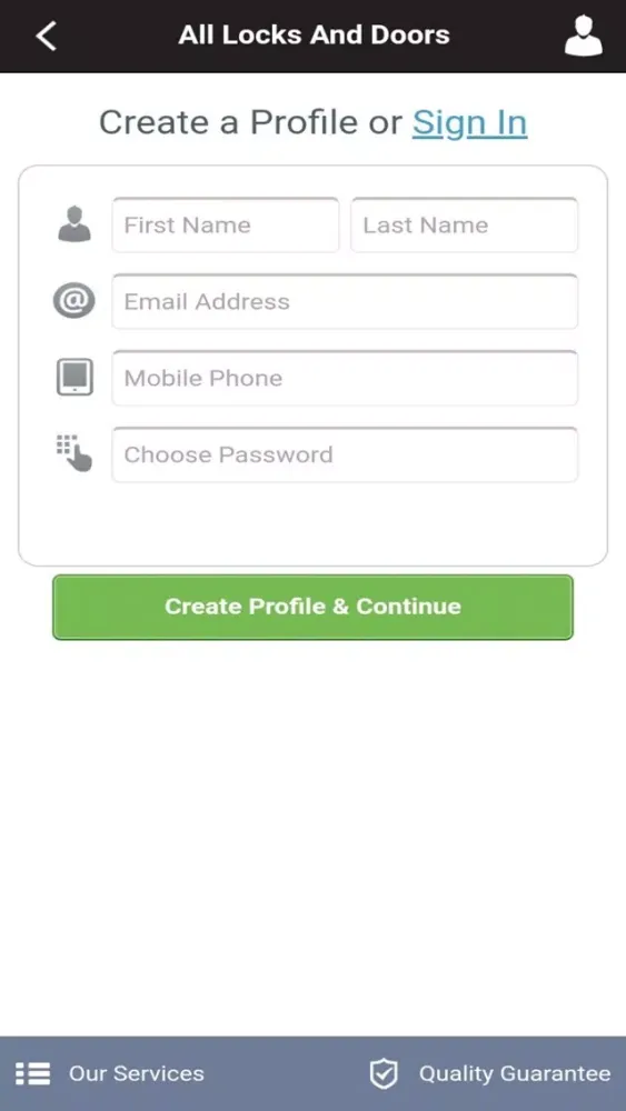 Commercial Locksmith and Door Services. This app allows customers to request services and manage their accounts.