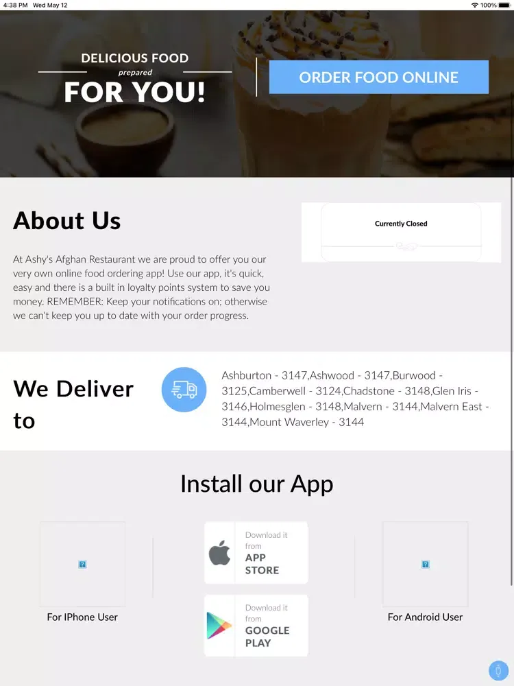 At Ashy's Cafe & Restaurant we are proud to offer you our very own online food ordering app!