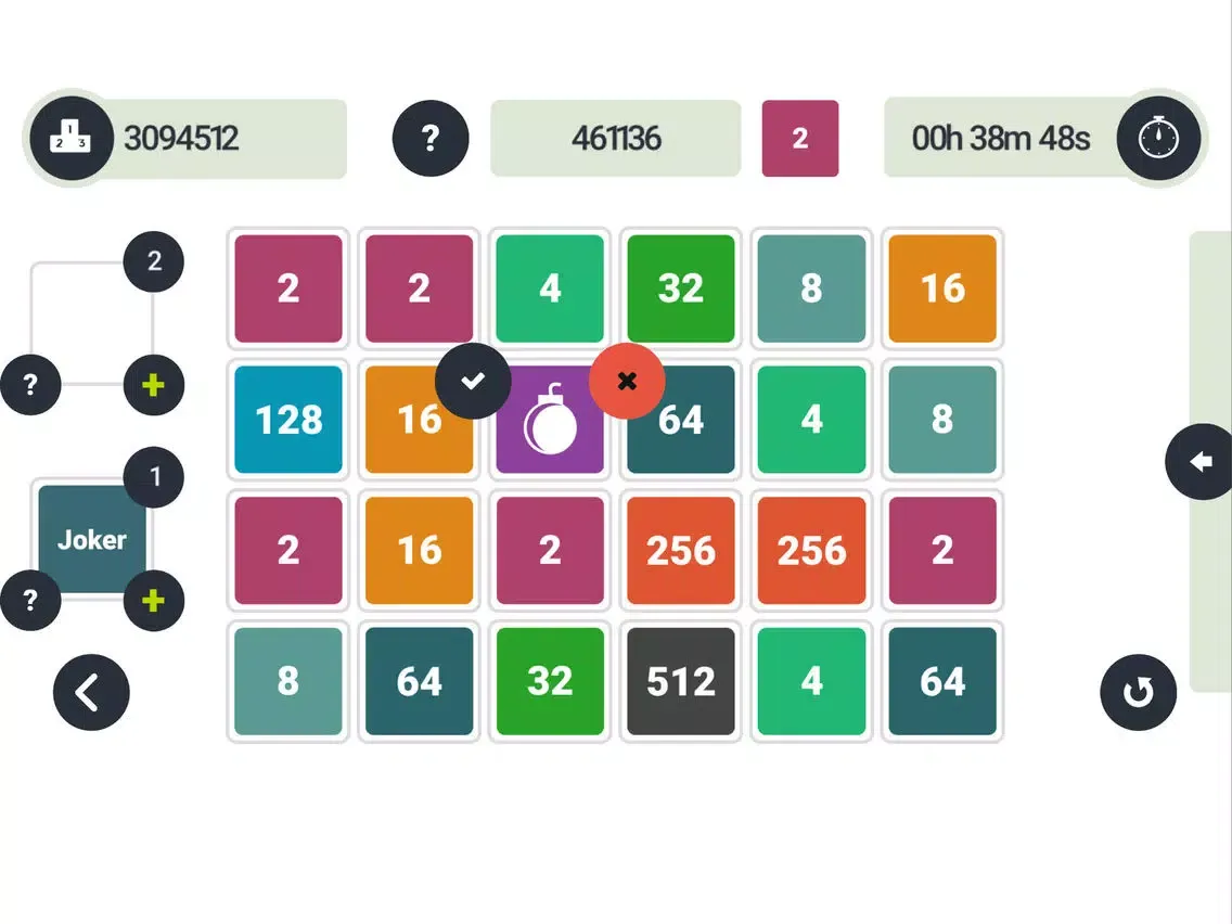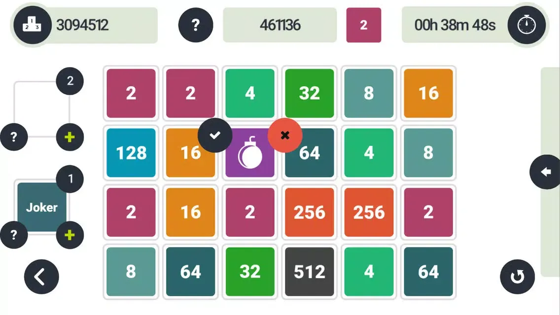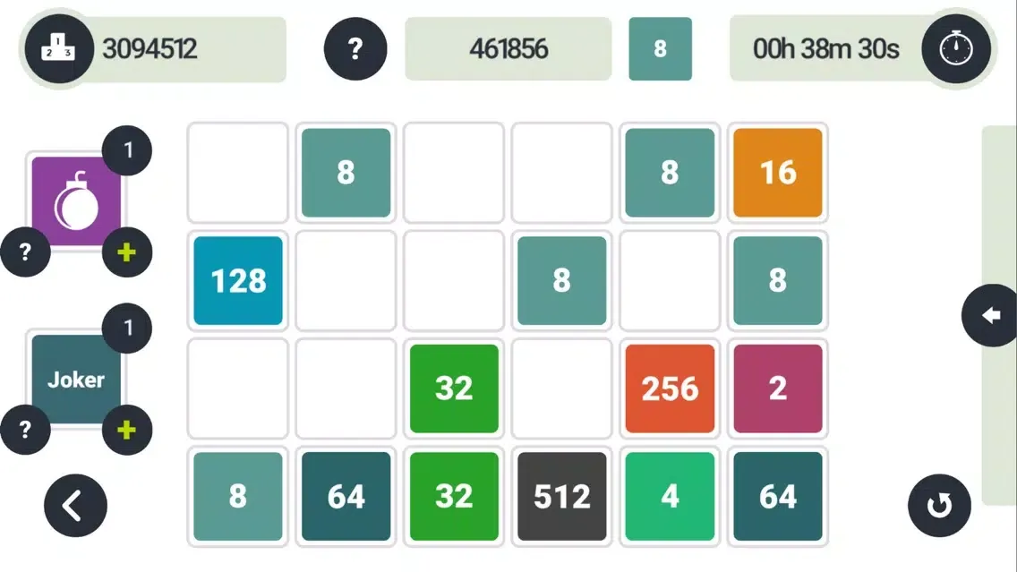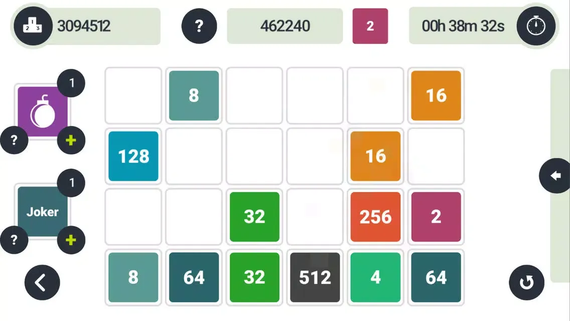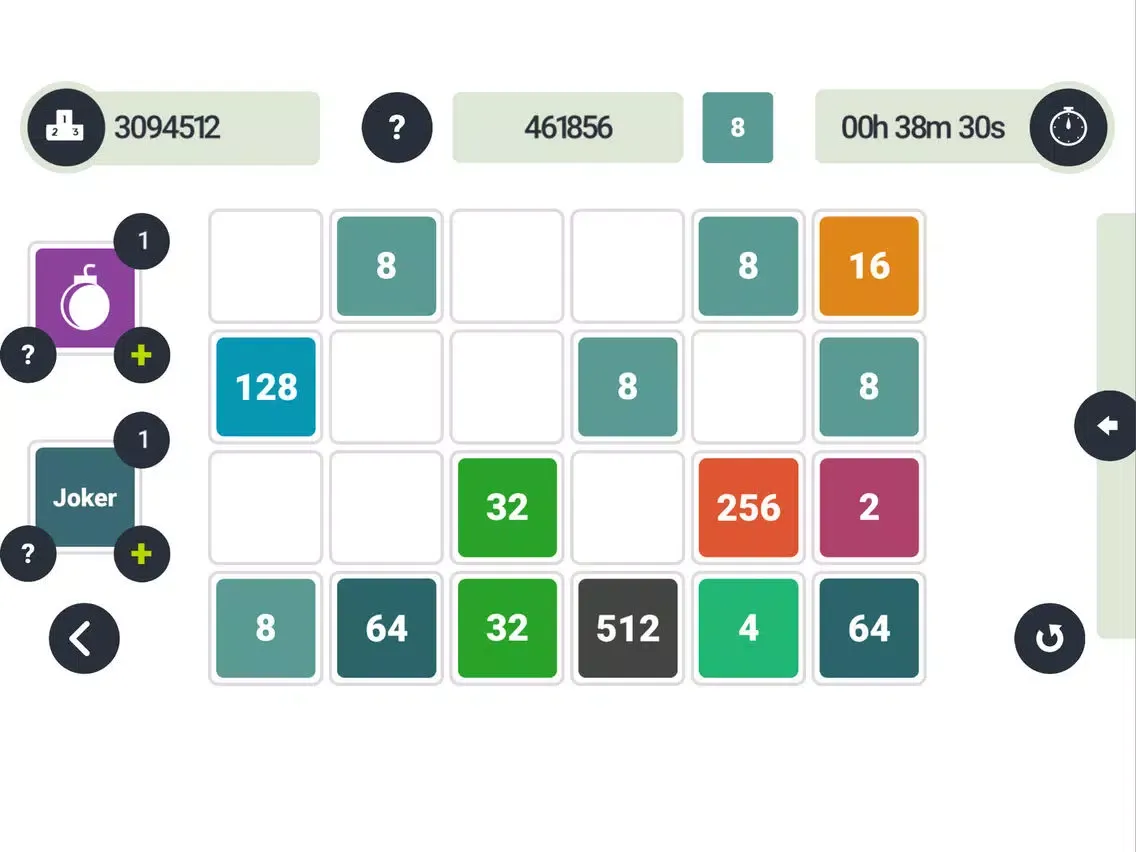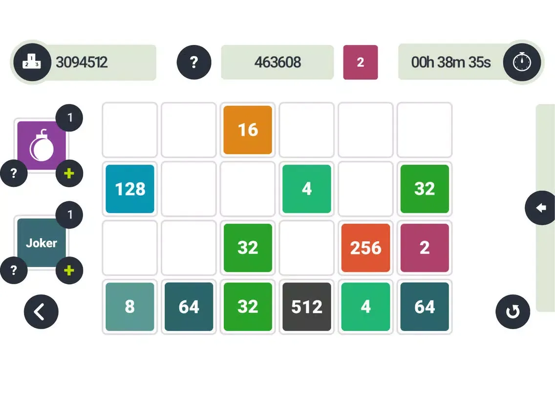 Your goal is to put at least 3 elements of the same kind in a row (almost any direction). Once you have reached that the elements will be merged and upgraded to the next higher level. The highest element number to reach is 2048