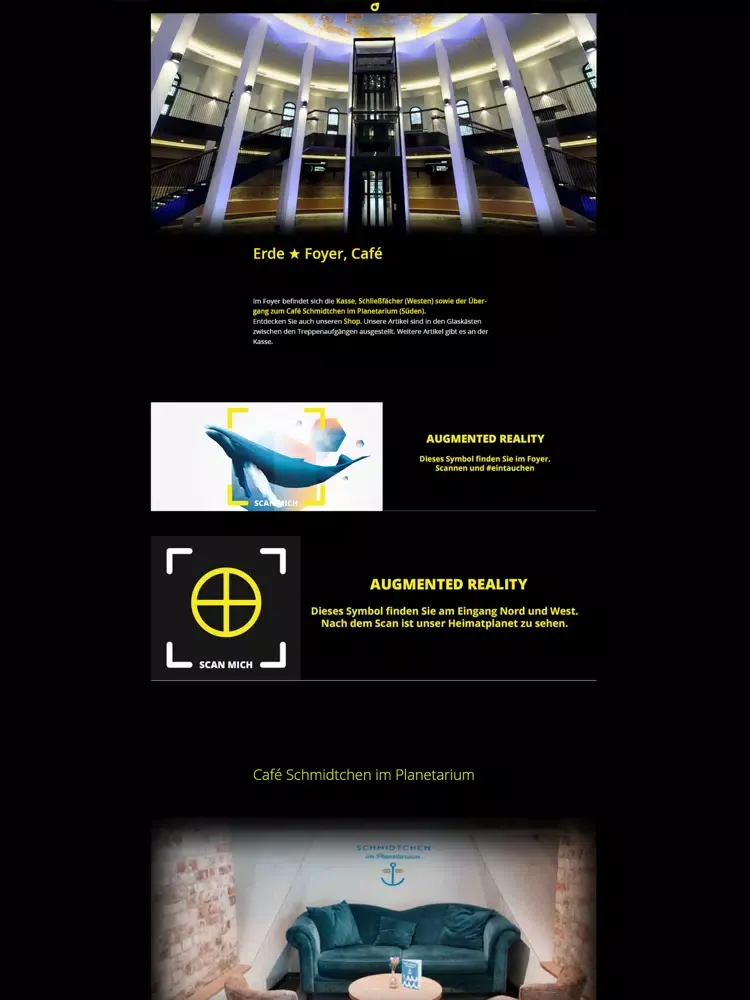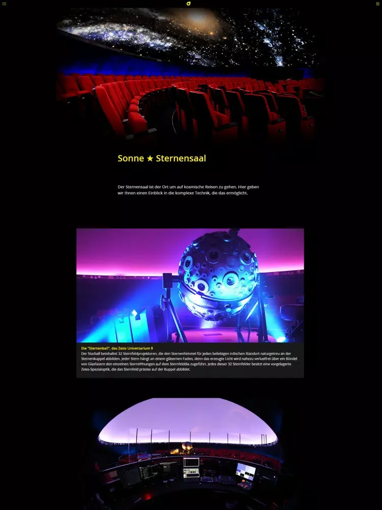 Discover the five most important stations in our planetarium. The floors of the building are named after the celestial bodies of the solar system - from Earth (foyer) to Neptune (viewing platform). Interesting information about the house itself and its history, about the projection technology in the dome or an audio guide in German and English for the exhibition "Mensch, Kosmos! The stars within us".