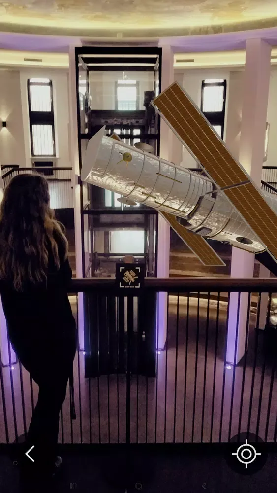 The app tells you where you can find the AR objects. They are spread all over the tower. It's very simple: Click on the corresponding link in the app - scan the floor (every AR app needs it for spatial orientation) - when the square appears, scan the corresponding symbol. Now the object hovers over, next to or in front of you. Discover planets, peak through our walls or take a picture of yourself with the Hubble Space Telescope.
