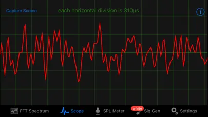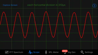 The display of the Scope can be adjusted easily using pinch gestures in both horizontal and vertical directions. Zero crossing detection of the waveform provides a smooth display and can be set to either positive or negative direction zero crossing.