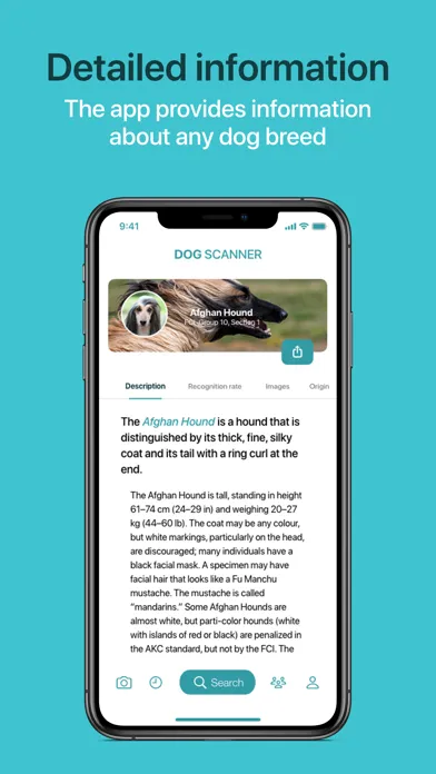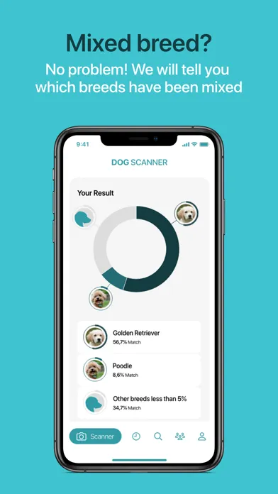 Dog recognition as easy as it gets! Despite the small app size you will get all features and be able to identify a dog’s breed or get access to our extensive database at any time! Before you consider getting an expensive DNA test, simply scan your dog with the app and the dog breed will automatically be determined within seconds! Download the Dog Scanner app now!