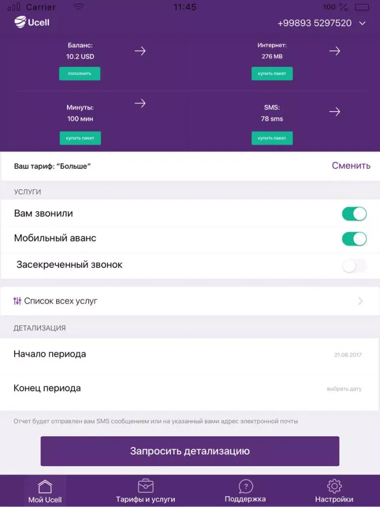 Мобильное приложение My Ucell Business позволяет управлять услугами связи с мобильного телефона.