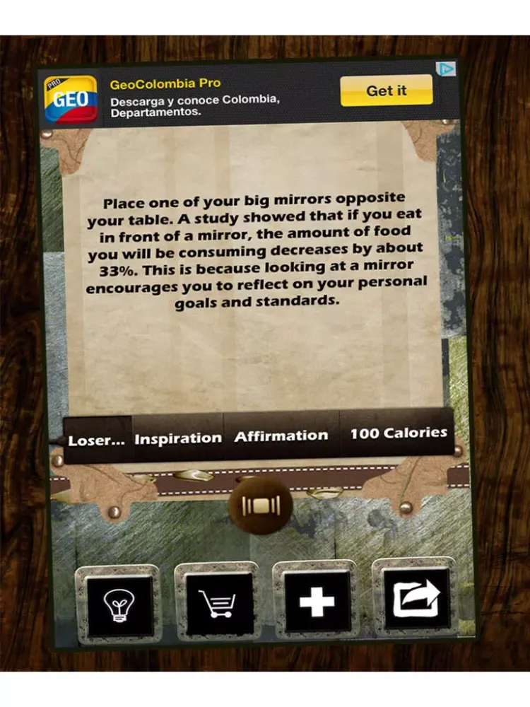 2. Positive Affirmations - The app randomly generates a Weight Loss Affirmation that can help you formulate a positive mindset and increase your desire to become fit and healthy.