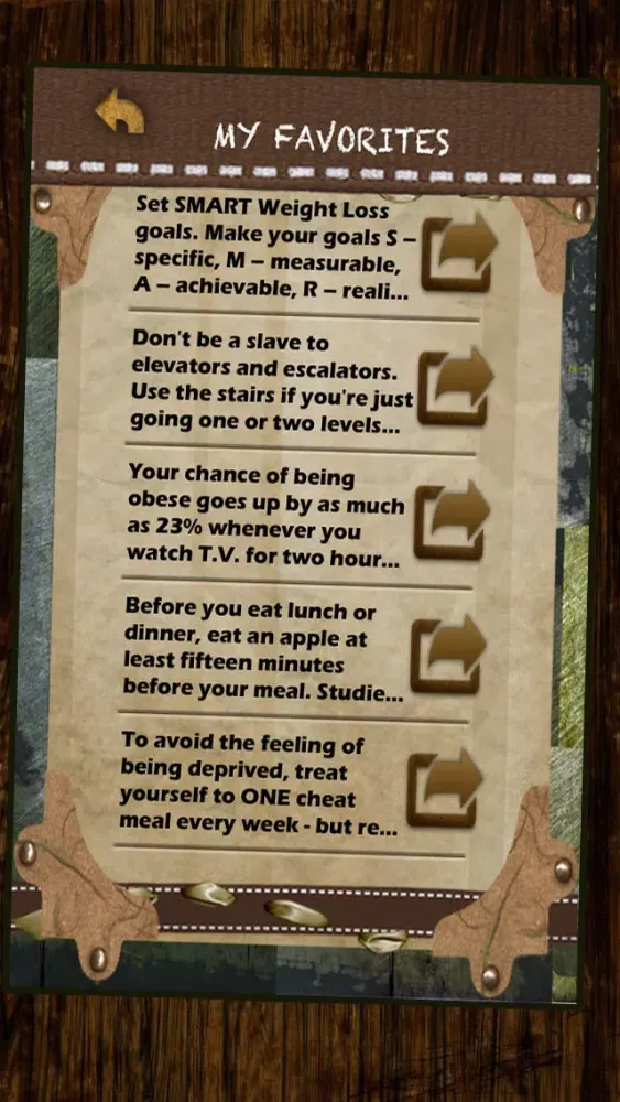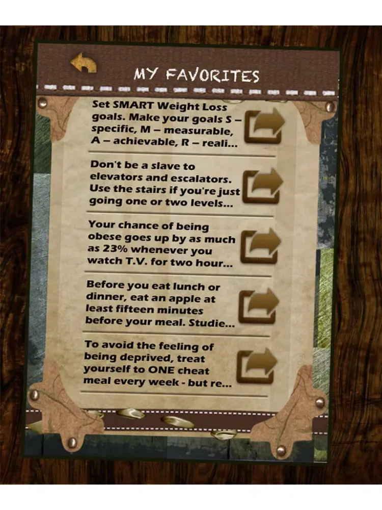- Save your favorite weight loss tips and strategies in your 'FAVORITES' folder