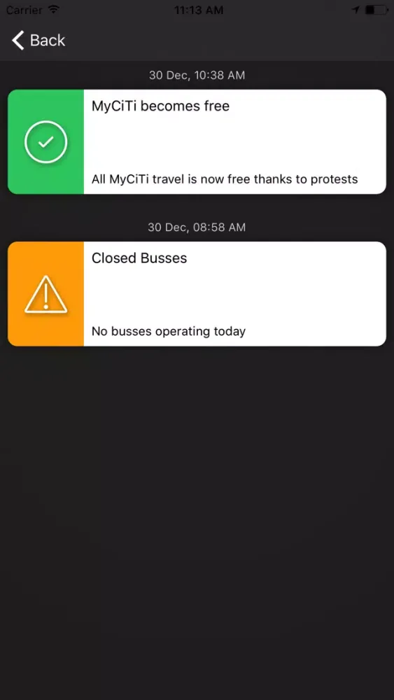 The only app solely focusing on Cape Town's MyCiti bus service.