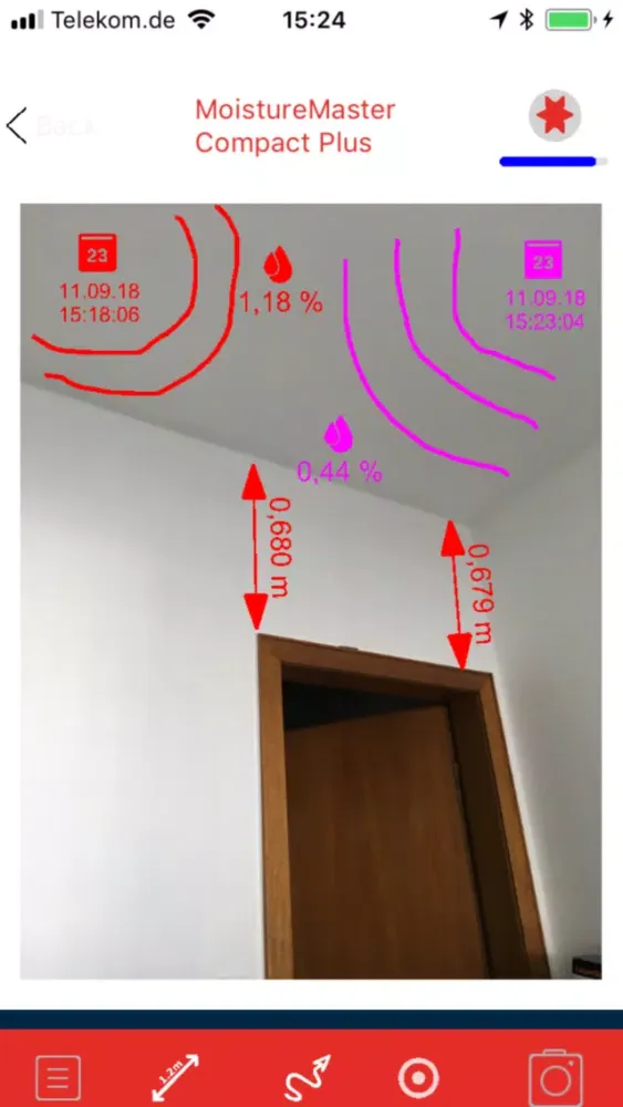 The free-style drawing in images and photos with time stamp option is used to document and compare several measurements in a single picture.