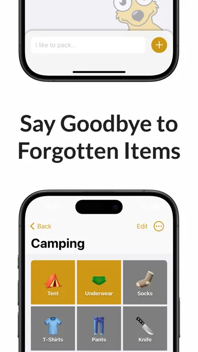 • Create & Customize Lists: Quickly build packing lists tailored to your needs.
