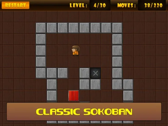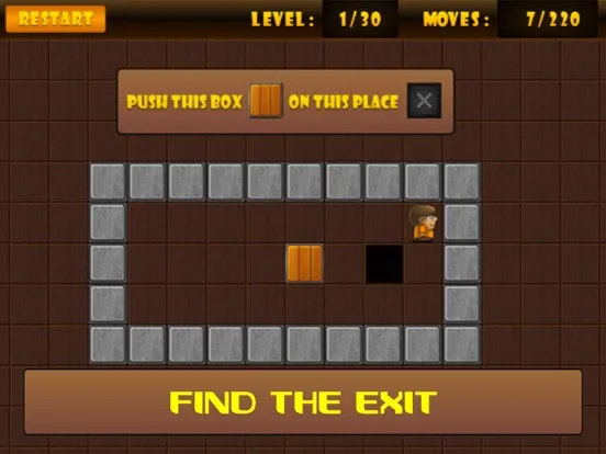 In this game,you need to push all boxes in a warehouse to find the exit and escape here.