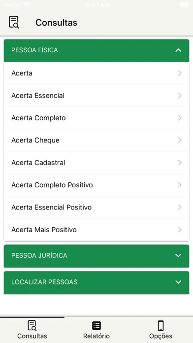 Além das consultas mais habituais, e o score de crédito, também estão disponíveis neste aplicativo as consultas das famílias Acerta e Define.
