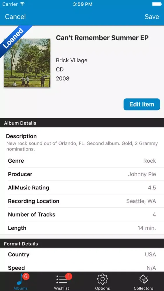 - Create a free account and store your albums collection list in the cloud online. Access from any iOS device any time!
