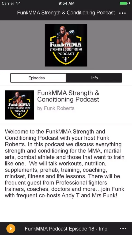 Welcome to the FunkMMA Strength and Conditioning podcast with your host Funk Roberts. This podcast is dedicated to everything strength and conditioning for MMA, Martial Arts and Combat Athletes and those that want to train like them. We will talk workouts, nutrition, training programs, supplements, prehab, training, coaching, mindset, fitness and life lessons. We will also have frequent guest from Professional fighters, trainers, coaches, doctors and more. Join Funk and frequent co hosts Andy T and Mrs Funk on this amazing journey to help you becoming a Conditioning Beast!