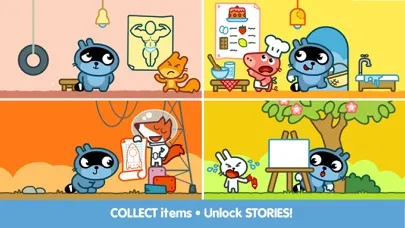 Pango will have to bring back 8 ingredients to Pig's kitchen, 8 tools for Fox's rocket, sports equipment for Squirrel, and crayons for Rabbit's drawing…