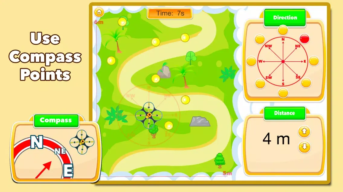 This app can be used independently by children or as a teaching tool in the classroom. It is particularly useful in reinforcing school learning around direction, measurement and angles.