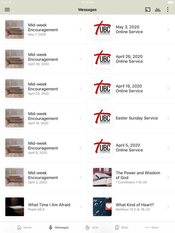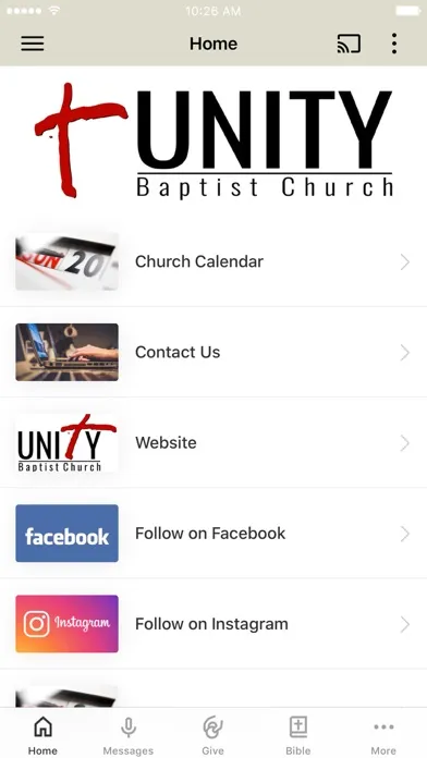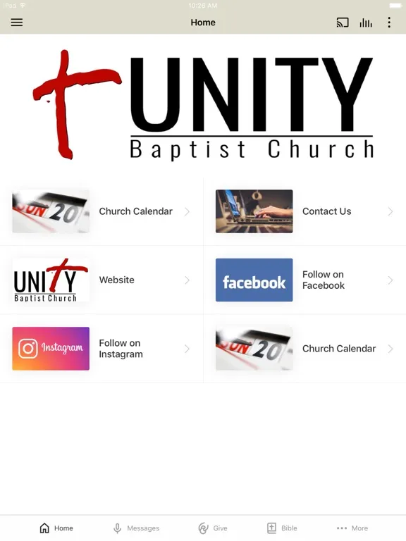 Tangkapan skrin Unity Baptist Champaign iPad