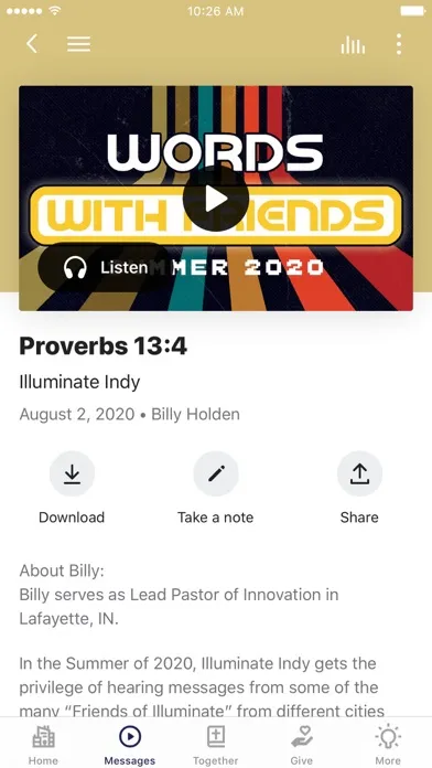 We exist to illuminate hope by leading people to follow Jesus. This app gives you unlimited access to our weekly message audio and video, connection points and guides for Community Groups, Free bible resources, Access to our RightNow Media Library (with a free account for you!), Illuminate Calendars, In-app Giving, In-app Bible, and any other important info you may need to stay connected to the Illuminate Community.
