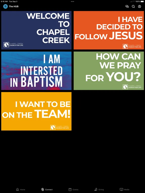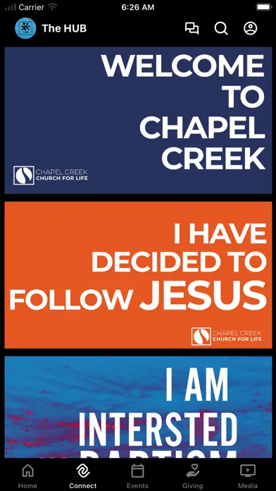 The Hub will help you find all the content you're looking for, and you can share it with all your friends and family right from the app. You'll also stay up to date on all the latest events and happenings. We hope this will be a one stop shop for you to feel connected to your church family!