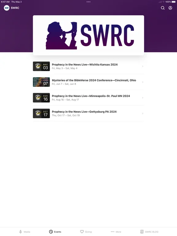 Tangkapan layar Southwest Radio Church iPad