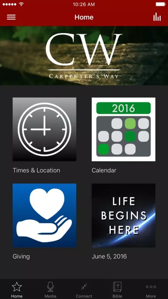 The Carpenter's Way Church App was created with the Subsplash App Platform.