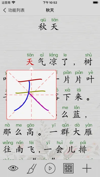 This app includes all the 200 characters of "Chinese Textbook for Primary School,Grade 3, Volume 1"(PEP edition). it is structured exactly the same with textbook lessons, and each character write with correct stroke orders.
