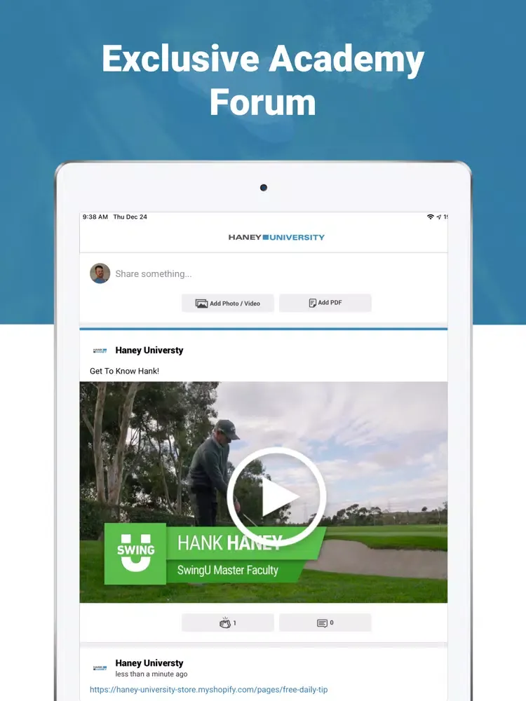 Academy Forum: A unique social feed where instructors share VIP content, while students share photos and videos about their golf games, training and progress with the entire online academy.