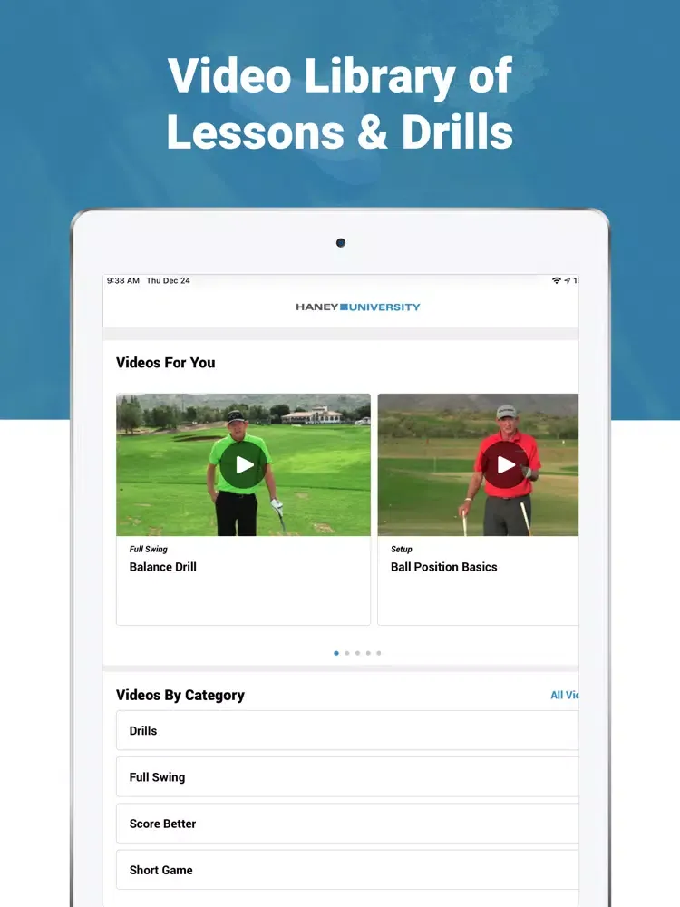 Lessons & Drills: students get anytime, anywhere access to Hank’s well-organized library of tips, drills and lessons - the same drills Hank uses with his elite students!