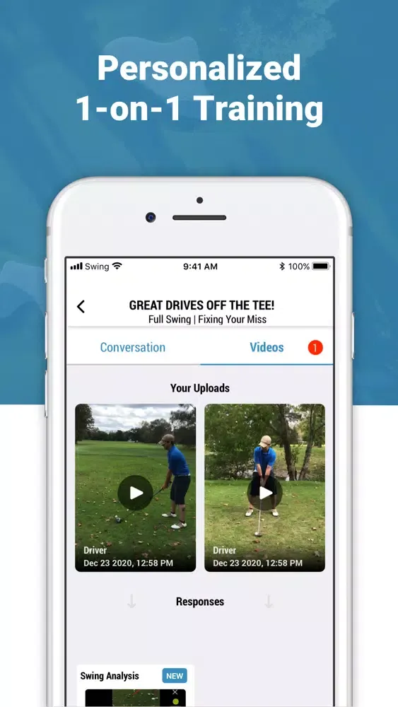 Swing Locker: students can upload film, save and categorize their swing videos after filming with their smartphones