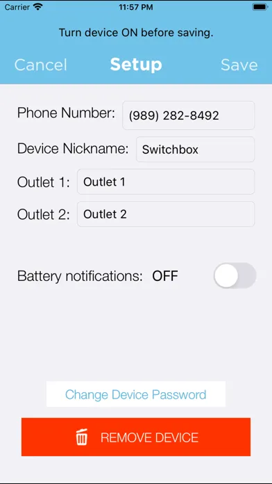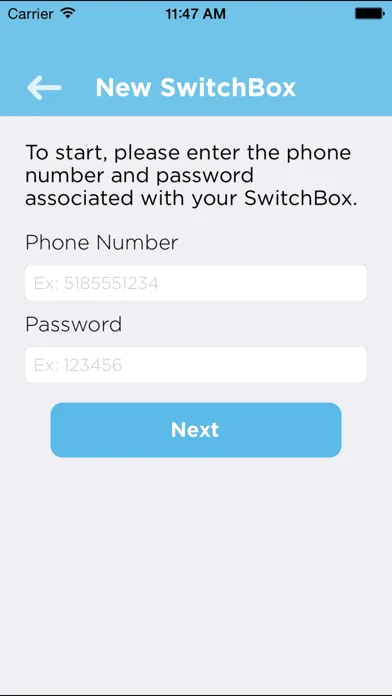 This app acts as an intermediary to send text and phone communications to your SwitchBox device using the Twilio internet telephone service. The SwitchBox contains electrical switches (max total power 1800W), which activate and Power On/Off connected electrical devices. Phone Calls and Text Messages control these connected devices, and sustain or interrupt continuous power to them.