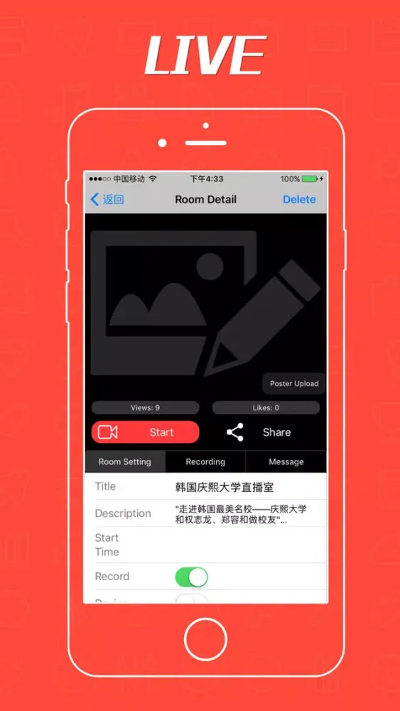 3wyc video recorder is a mobile phone app for live streaming, users can initiate a live show and interact with the audience through bullet screen.