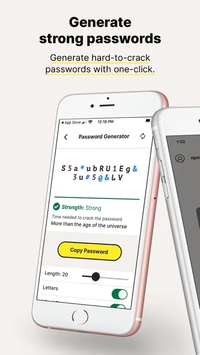 Your information stays private even from us because it’s encrypted using zero-knowledge encryption before being stored in your cloud-based vault. Your passwords and other personal information can be even more secure by enabling two-factor authentication, plus you can use Apple’s Touch ID® or Face ID® so you can access your vault even faster.