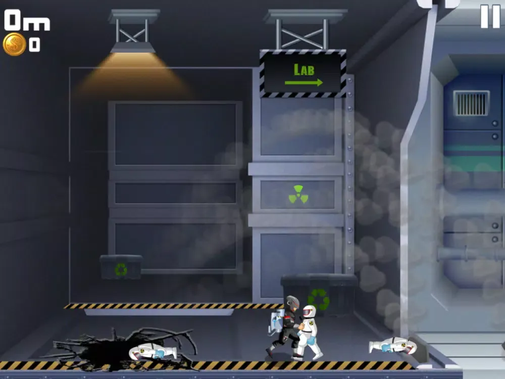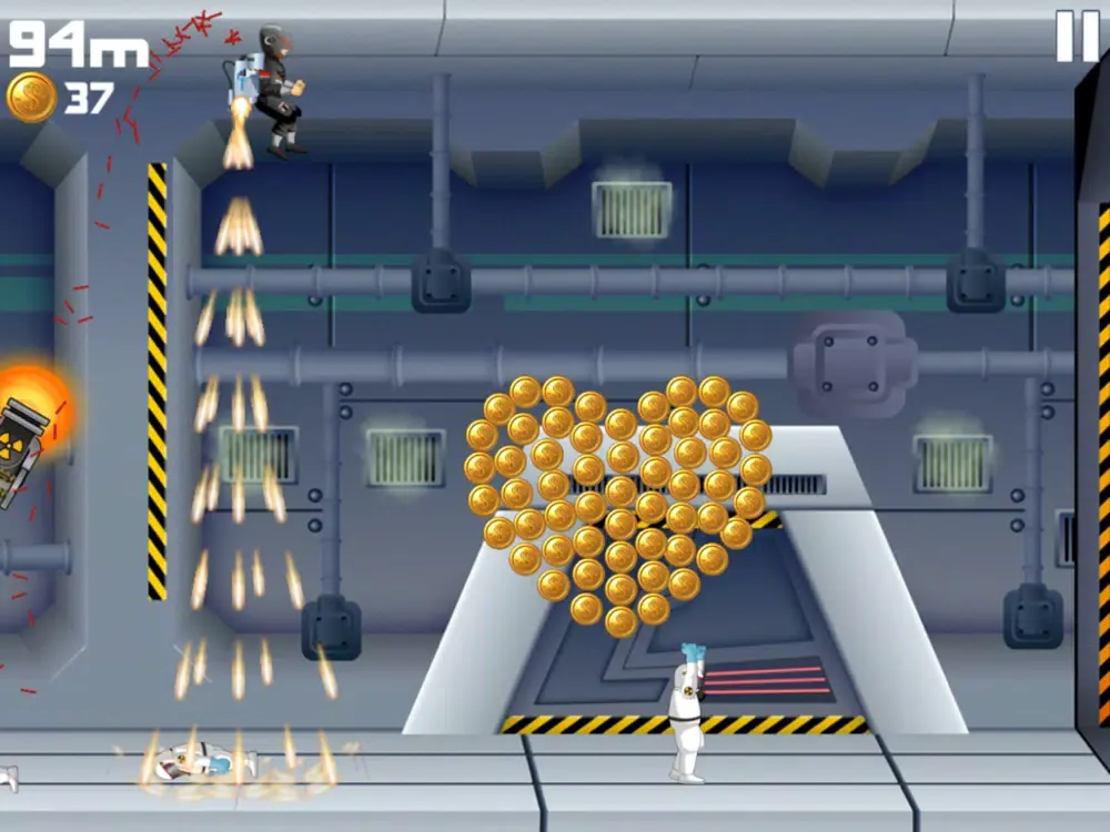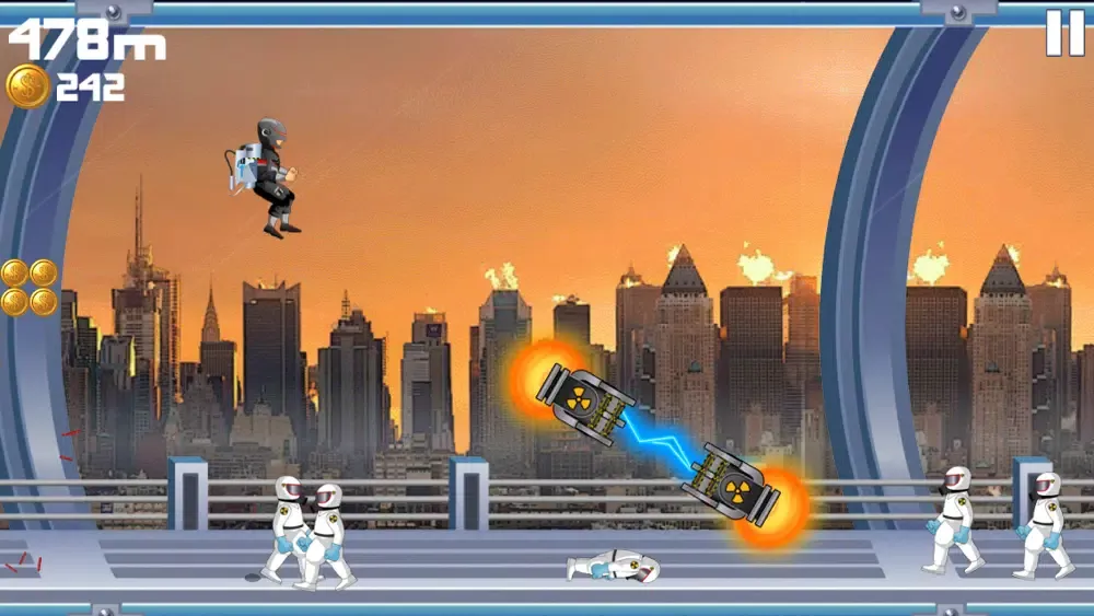 Use the Machine Gun Jet-pack to scatter the astronauts, but throughout each game you’ll collect coins and complete missions to earn cash and buy new gear!