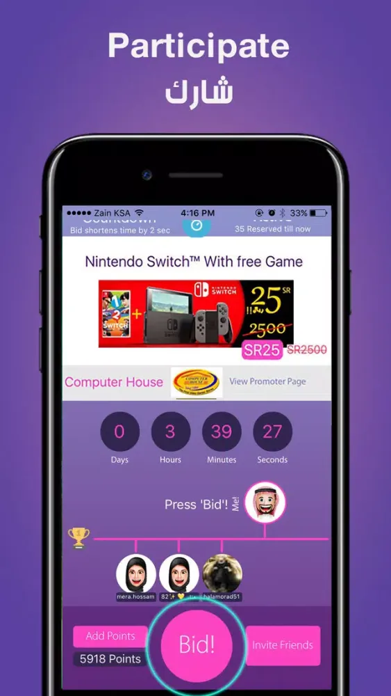- عند بدء المنافسة، اضغط على زر (نافس) حتى تتصدر قائمة المشاركين.