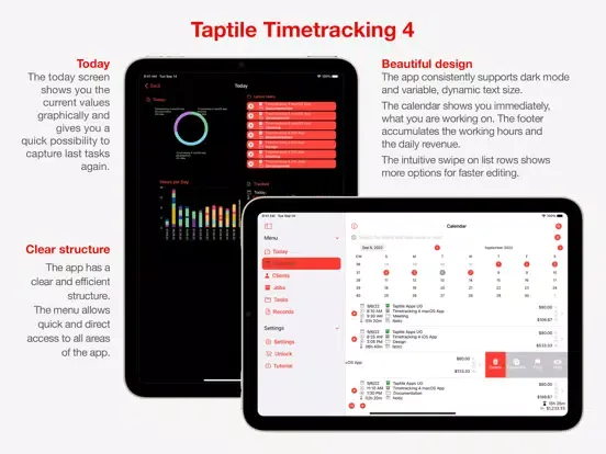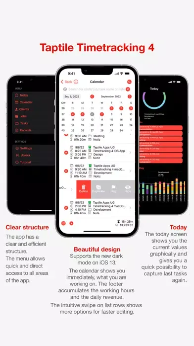 - Efficient management of your data via calendar-, client-, task- and entry-lists