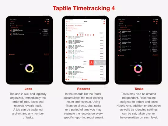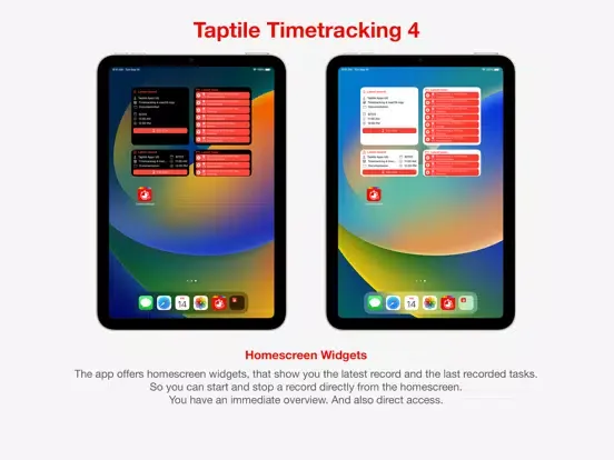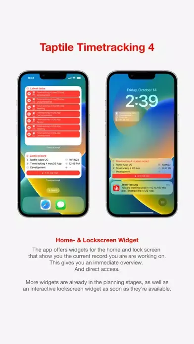 - Lockscreen- & HomeScreen widgets: See at a glance what you are tracking your working time on