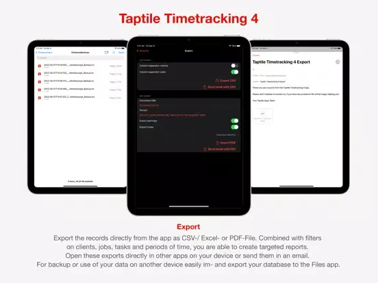 - Excel and Numbers CSV export to send via email, iCloud Drive export or open directly on your device